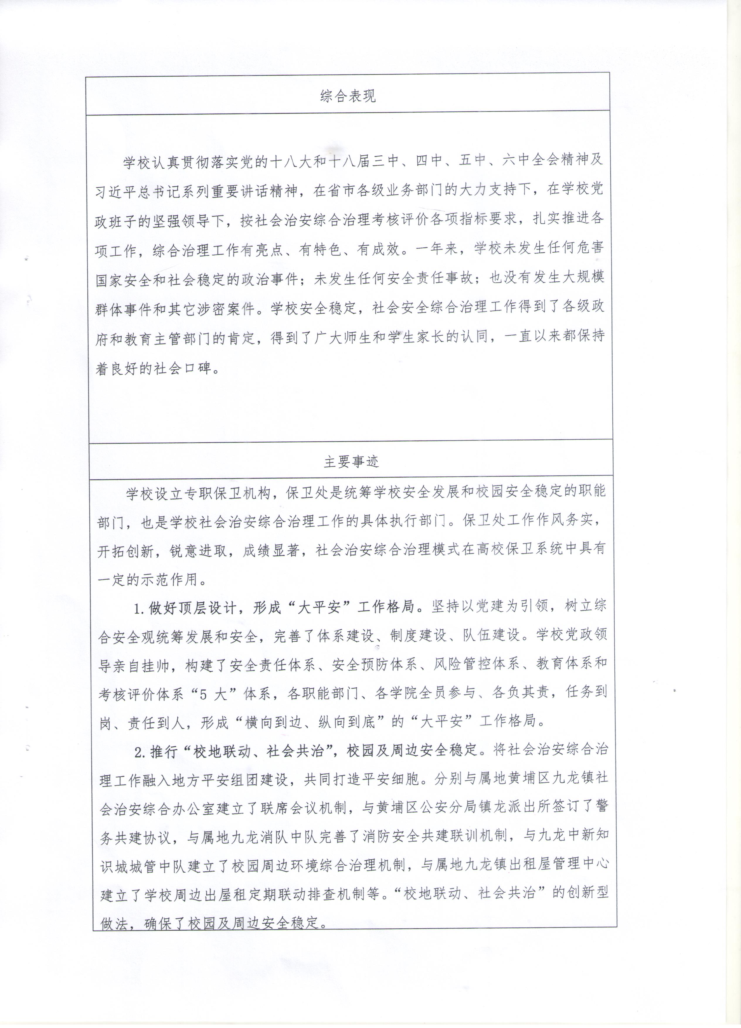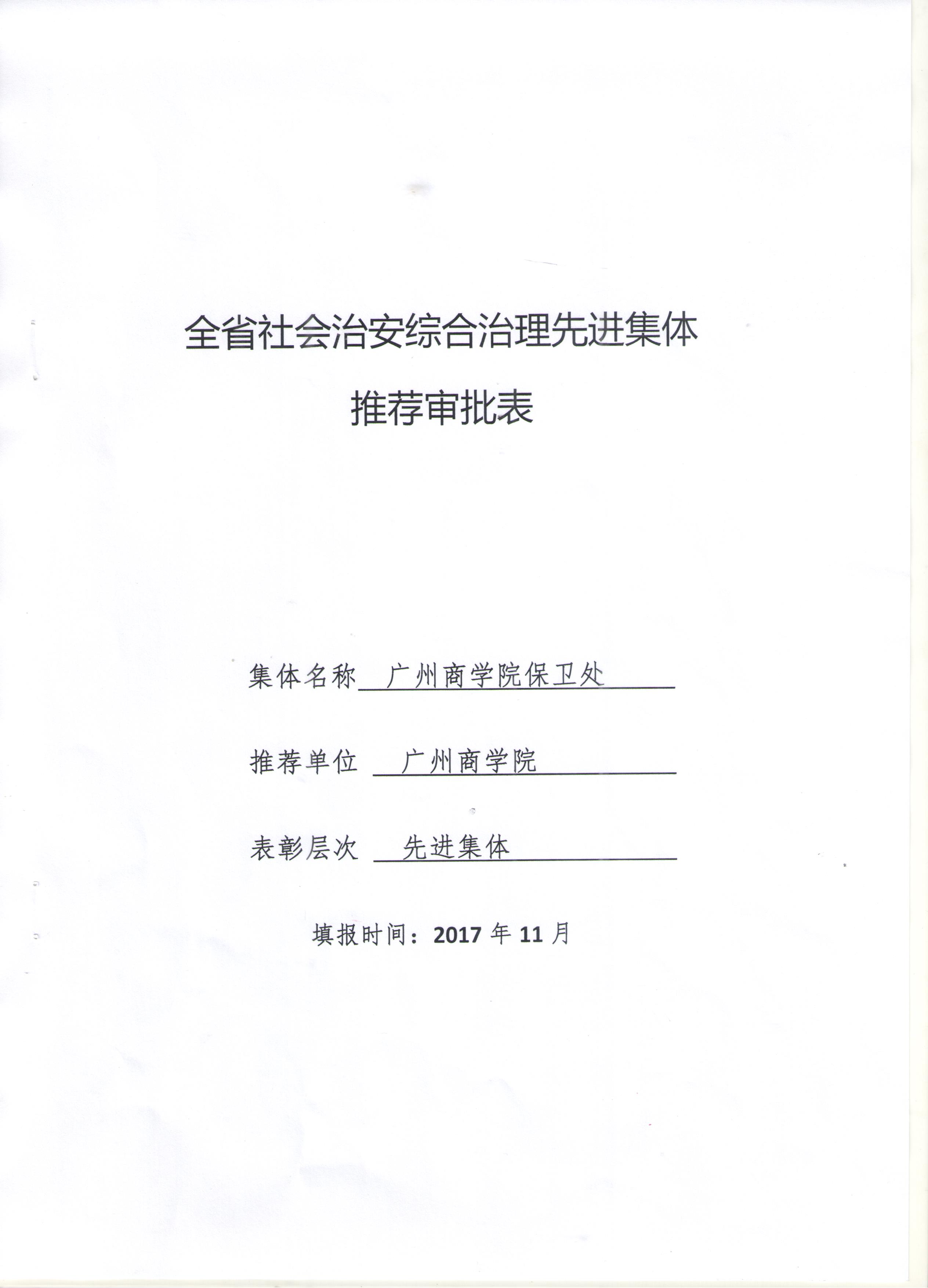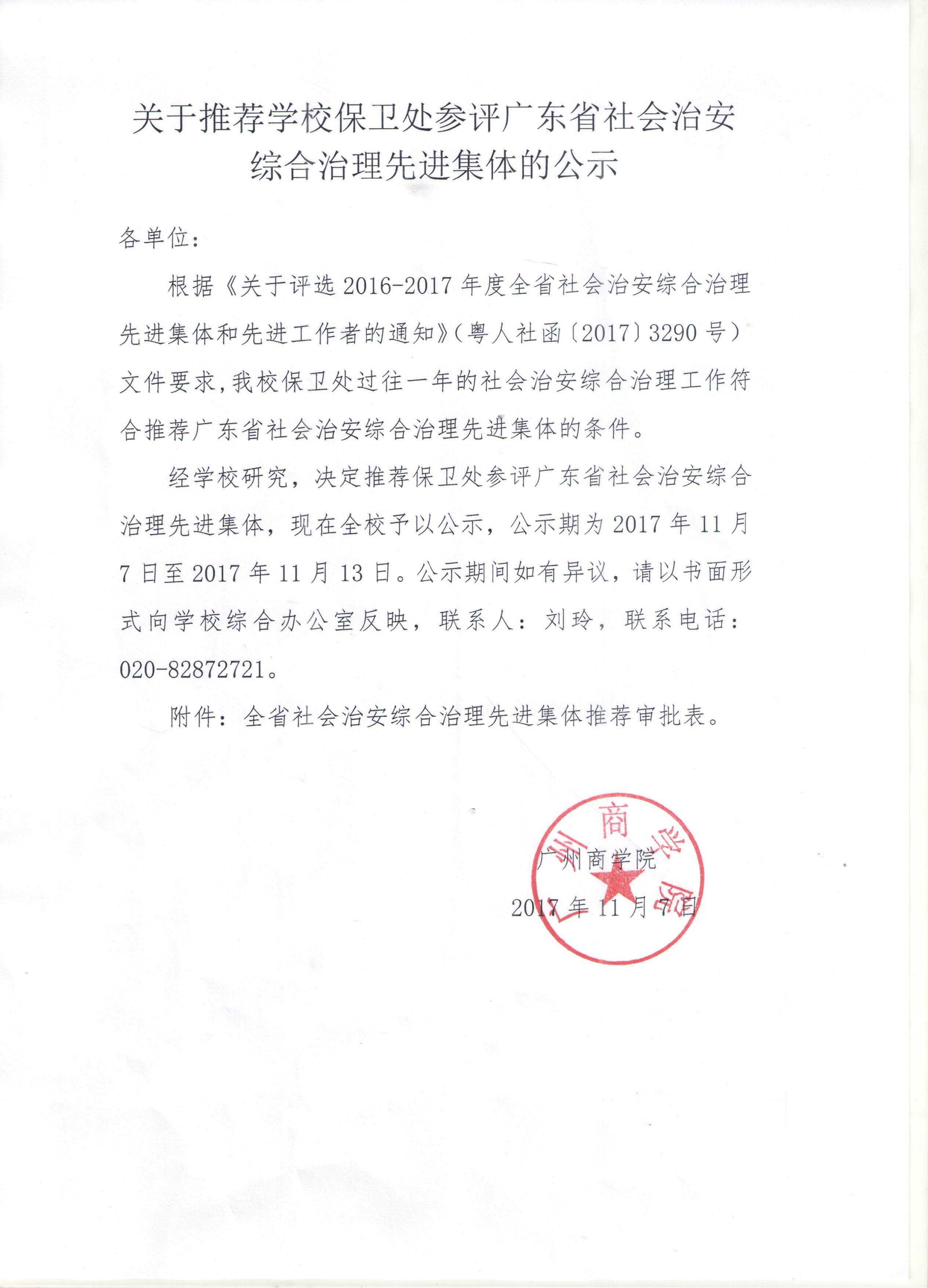 关于推荐保卫处参评省社会治安综合治理先进集体的公示