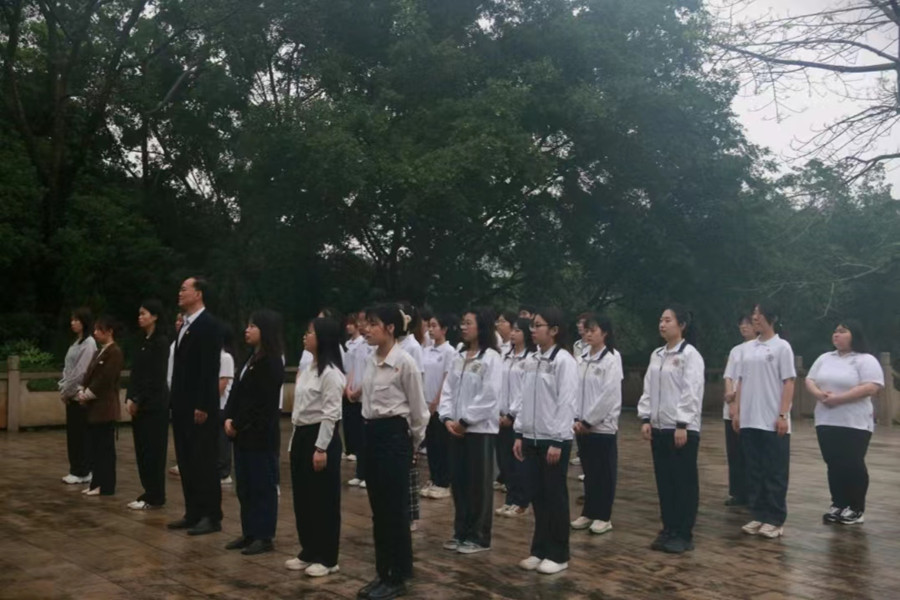 青山埋忠骨,山河念英魂。全体师生怀着无比崇敬的心情来到旺村革命烈士纪念碑。他们依次向革命烈士敬献鲜花并进行深鞠三躬,深切缅怀革命先辈们的丰功伟绩。接着,全体肃立,为革命先烈默哀三分钟,深切表达对他们的哀悼之情。